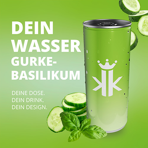 Your companion for freshness and well-being: The refreshing water with cucumber and basil flavor in the elegant SlimLine can with an individual design.